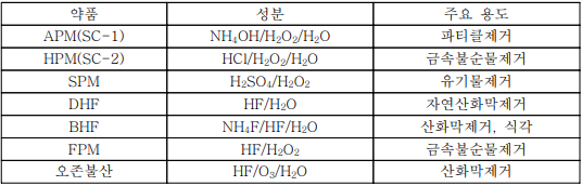 cf) 반도체 공정에서 사용하는 주요 세정액