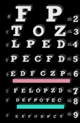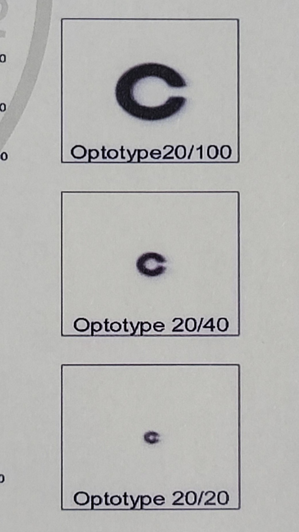 그림에서 보시다시피 좌안의 시력은 매우 선명하지 못합니다.
