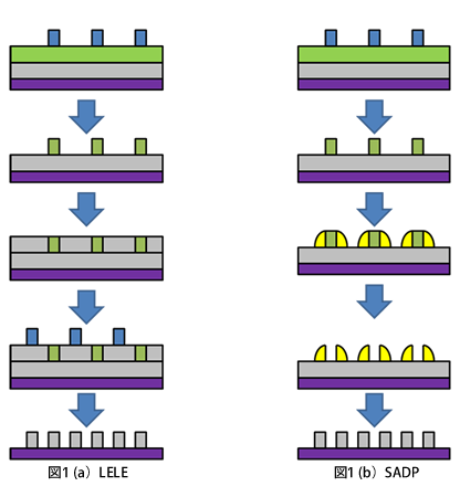 - 20나노급 DRAM 공정에 SADP, 10나노급 DRAM 공정에 SAQP 이용.