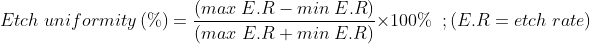 3) etch uniformity = 식각이 가장 많이 진행된 부위와 가장 적게 진행된 부위의 차이를 합으로 나눈 비율